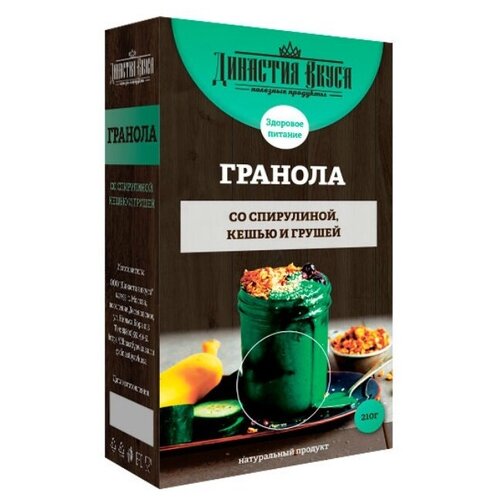 Гранола со спирулиной, кешью и грушей, Династия Вкуса, 210 гр.