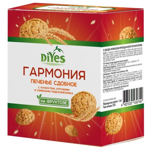 Печенье ДиYes Гармония,с кунжутом, отруб.,сем.подсолн.,на фруктозе, 350г , 2 уп.