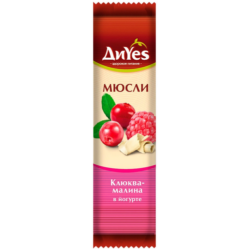 Батончик мюсли DiYes "Клюква-малина в йогурте" 25 г., 36 шт.