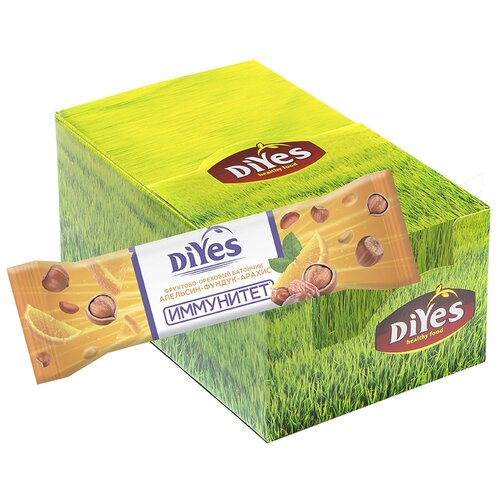 Батончик фруктово-ореховый DiYes "Апельсин-фундук-арахис с молочным шоколадом и витамином С" 40 г., 36 шт.