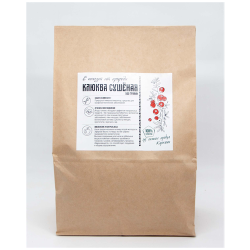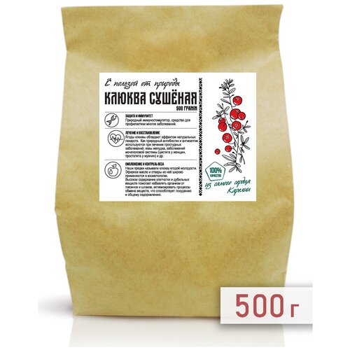 Сушеная Клюква, ягоды, в подарочной упаковке, 500 гр. (Крафт пакет)