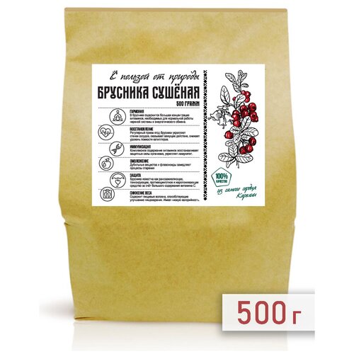 Сушеная Брусника, ягоды, в подарочной упаковке, 500 гр. (Крафт пакет)