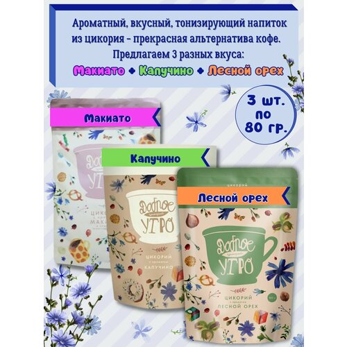 Доброе утро Цикорий натуральный — вкус Макиато, Капучино, Лесной Орех, 3 упаковки по 80гр