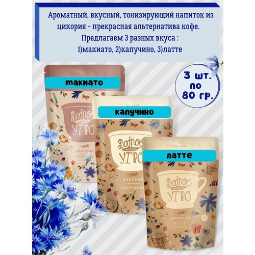 Доброе утро Цикорий натуральный — вкус Макиато Капучино Латте, 3 упаковки по 80гр