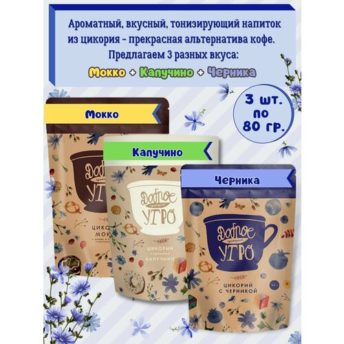 Доброе утро Цикорий натуральный — вкус Мокко, Капучино, Черника, 3 упаковки по 80гр