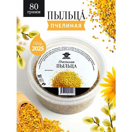 Пыльца цветочная натуральная 80 г, сбор 2024, пчелиная пыльца, обножка, сушеная , пищевая, витамины