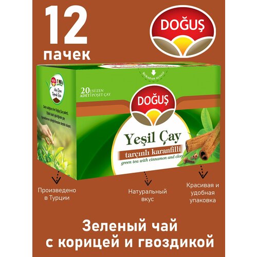 Зелёный чай с корицей и гвоздикой 20 пакетиков DOGUS (упаковка 12 шт)