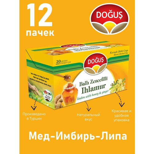 Липовый чай c мёдом и имбирем 20 пакетиков DOGUS (упаковка 12 шт)