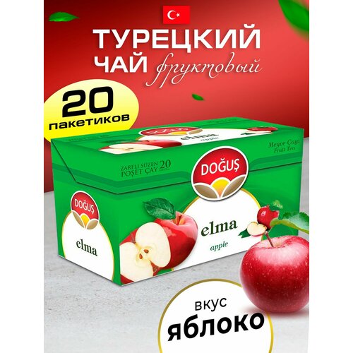 Турецкий чай от бренда Dogus фруктово-яблочный 20 пакетиков мелколистовой