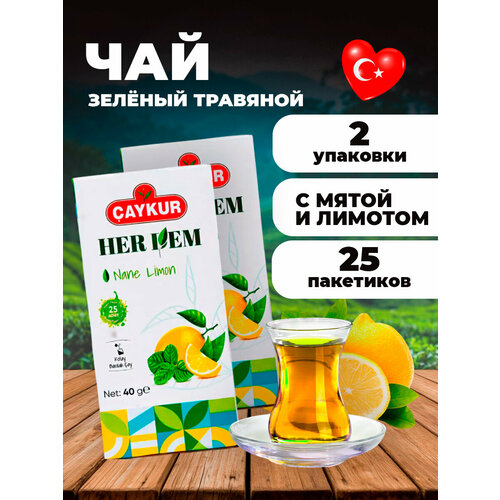 Турецкий травяной чай Caykur с мятой и лимоном (NANE LIMON mint lemon) набор 2 упаковки, 2шт по 25 пакетиков. Турция