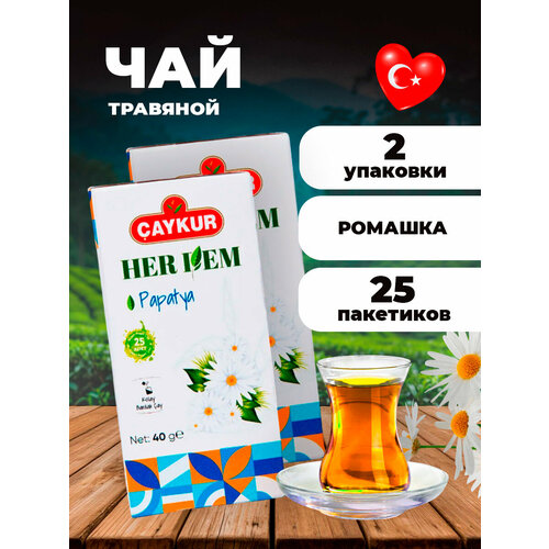 Турецкий травяной чай с ромашкой CAYKUR (HER DEM Papatya) набор 2 упаковки, 2шт по 25 пакетиков. Турция