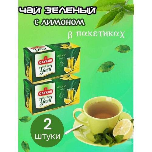 Турецкий зеленый чай с лимоном CAYKUR (YESIL CAY) Green cay lemon набор 2 упаковки, 2шт по 25 пакетиков. Турция