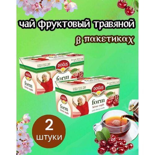 Турецкий травяной чай со вкусом вишни Kiraz Sapli DOGUS 20 пакетиков набор 2 упаковки, 2шт по 20 пакетиков. Турция