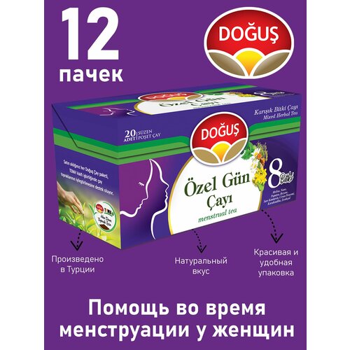 Чай для женщин, сбор 8 трав, для употребления во время менструации 20 пакетиков DOGUS (упаковка 12 шт)