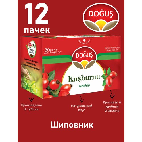Чай с шиповником 20 пакетиков DOGUS (упаковка 12 шт)
