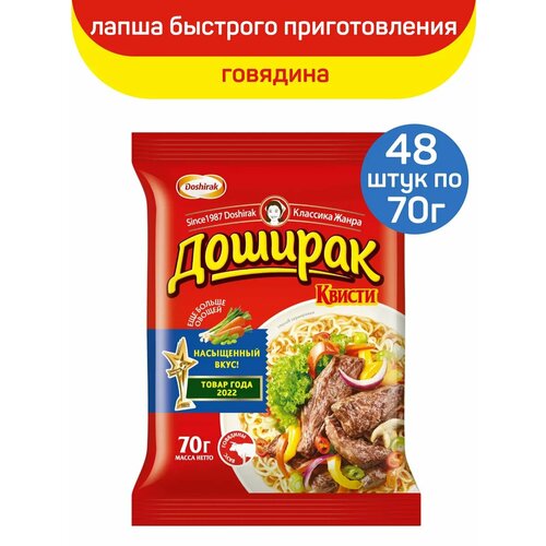Лапша быстрого приготовления Доширак Квисти со вкусом говядины, 48 шт по 70 г