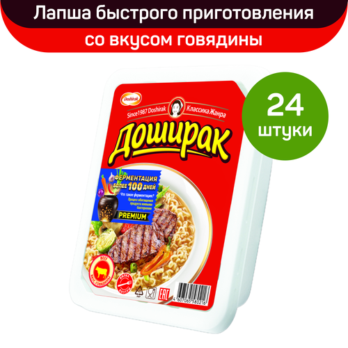 Лапша быстрого приготовления Доширак со вкусом говядины, лоток, 24 шт по 90 г