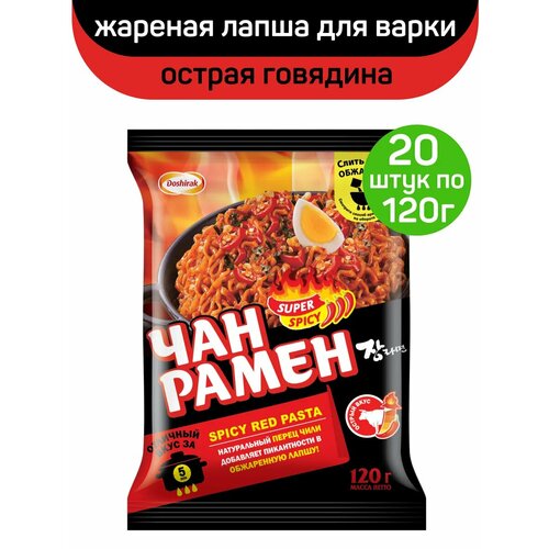 Лапша для варки Доширак Чан Рамен, острая жареная, 20 шт по 120 г