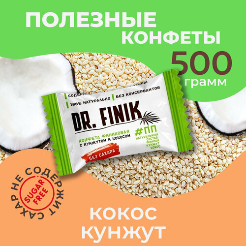 Полезные конфеты из фиников с кокосом и кунжутом Dr. Finik без сахара, 500 г. Набор полезных батончиков, пп сладости