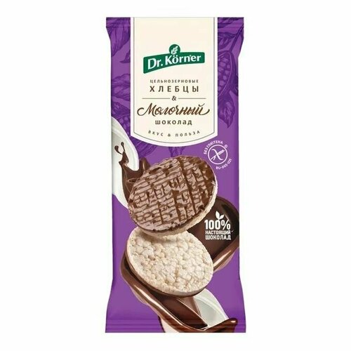 Хлебцы рисовые DR KORNER с молочным шоколадом, 67г, 8 шт.