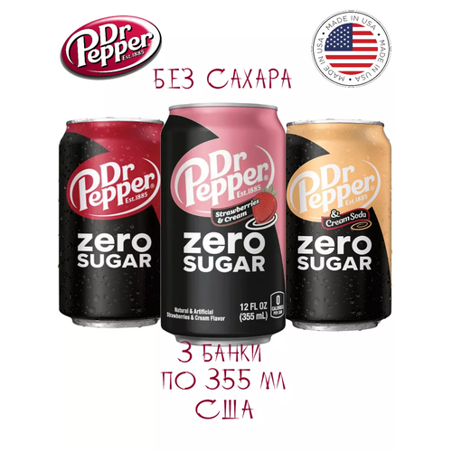 Напиток газированный Dr Pepper Cream Soda Zero Sugar США, без сахара, 3 банки по 355 мл