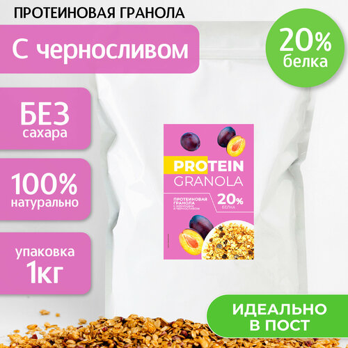 Гранола без сахара протеиновая, 1000г, с черносливом и финиками, Древо жизни, сухой завтрак, полезные хлопья на завтрак