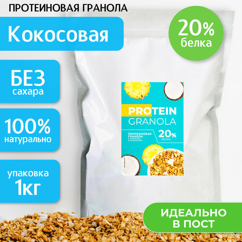 Гранола без сахара протеиновая, 1000г, c ананасом и кокосом, Древо жизни, сухой завтрак, полезные хлопья на завтрак