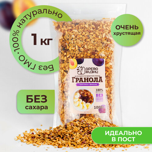 Гранола без сахара, 1000г, с черносливом и финиками, Древо жизни, полезные хлопья на завтрак