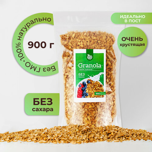 Гранола без сахара, 900г, классическая, "Польза ешь-ка", полезные хлопья на завтрак