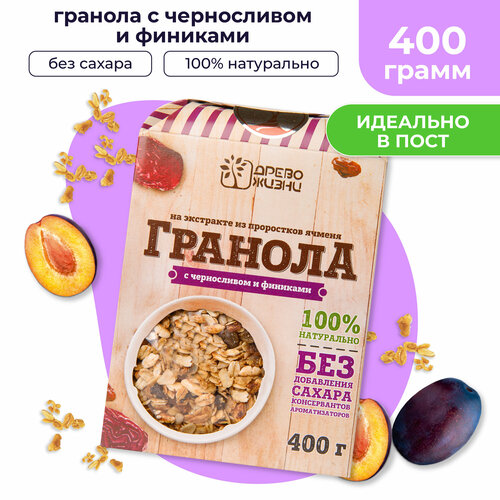 Гранола без сахара, Древо жизни 400 г, с черносливом и финиками