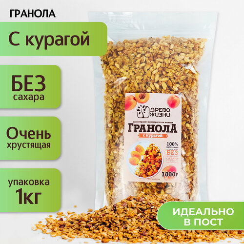 Гранола без сахара, 1000г, Древо жизни, с курагой, полезный завтрак