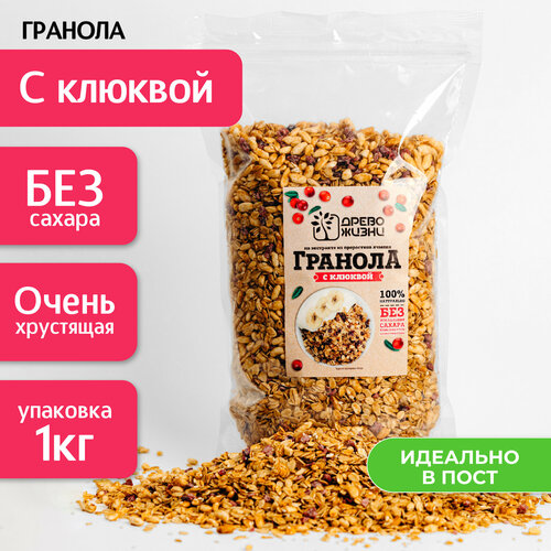 Гранола без сахара, Клюква, 1000г, Древо Жизни, полезный завтрак