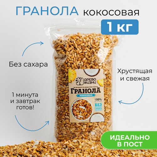 Гранола без сахара, 1000г, с ананасом и кокосом, Древо жизни, готовый завтрак