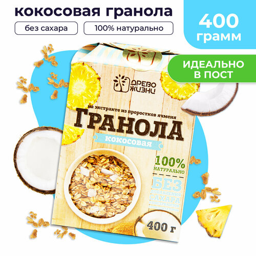 Гранола без сахара, Древо жизни 400 г, с ананасом и кокосом, полезный завтрак, пп еда
