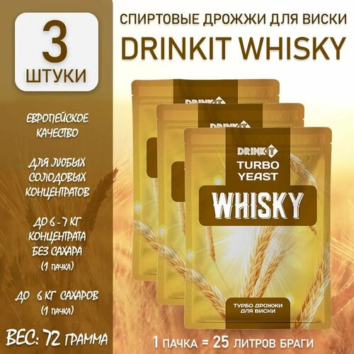 Спиртовые Турбо Дрожжи для приготовления Виски DRINKIT Turbo Whisky 72г. 3 штуки
