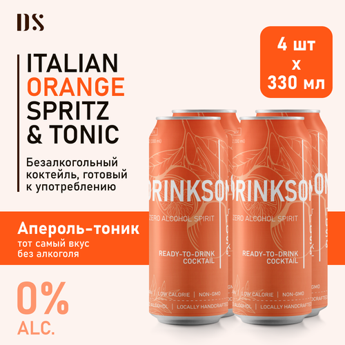 Апероль шприц тоник Drinksome безалкогольный коктейль, 4 шт по 0,33 л