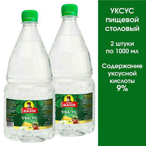 Уксус пищевой столовый Дядя Ваня, синтетический, без добавок, 9% уксусной кислоты, 2 штуки по 1000 мл.