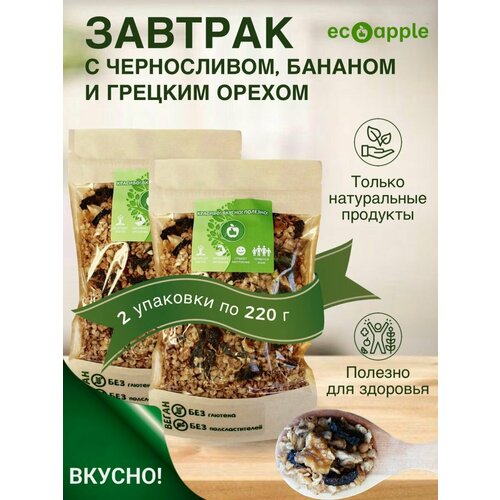 Гречневые хлопья ecoapple с грецким орехом и сухофруктами, без сахара, 440г