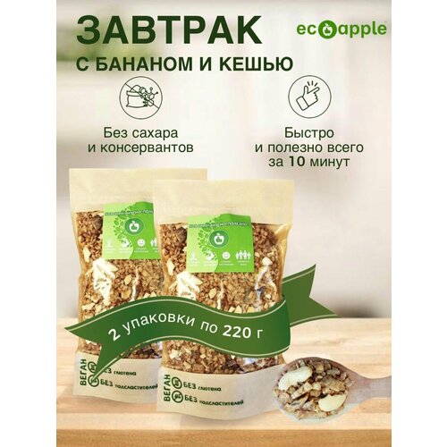 Гречневые хлопья ecoapple с бананом и кешью, без сахара, без ГМО, без глютена, 440г