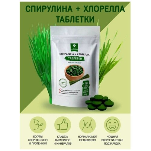 Спирулина Хлорелла,2 в 1, 600 таблеток по 500 мг / Суперфуд / VEGAN / Морские водоросли для Иммунитета