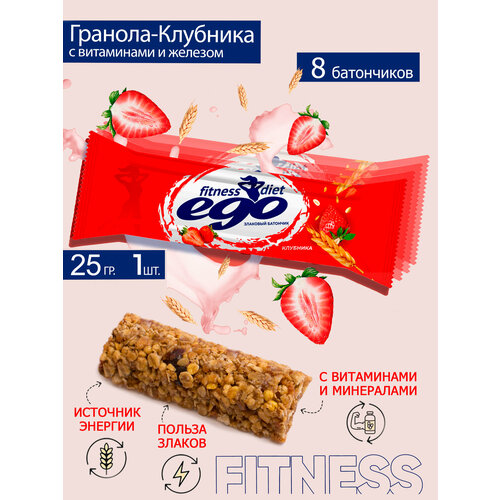 Батончик злаковый "Ego fitness" Гранола-Клубника с витаминами и железом 8 шт по 25 гр