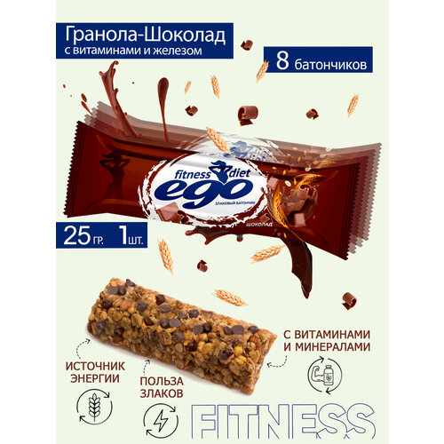 Батончик злаковый "Ego fitness" Гранола-Темный шоколад с витаминами и железом 8 шт по 25 гр