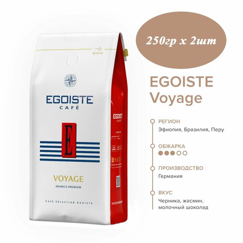 Натуральный жареный молотый кофе EGOISTE Voyage, арабика 250гр х 2шт