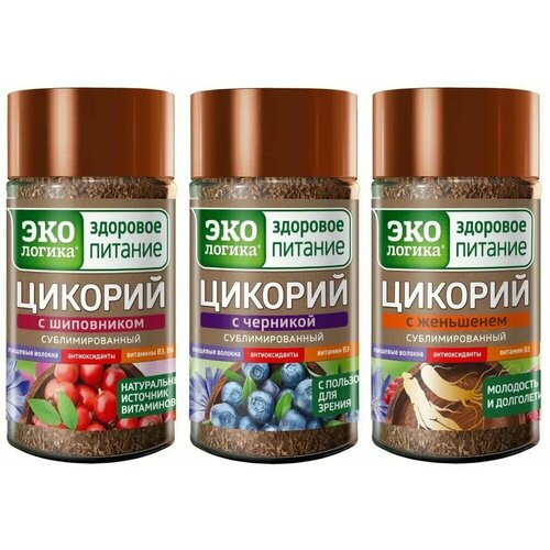 Цикорий растворимый Экологика 3 вкуса (Шиповник, Черника, Женьшень) 85 гр по 1 штуке