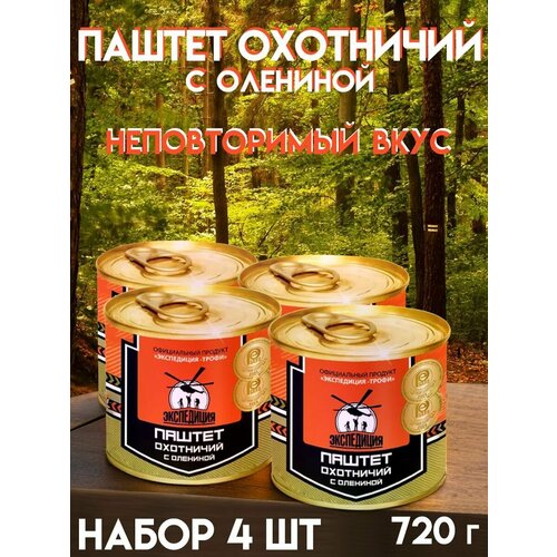 Паштет охотничий с олениной Экспедиция, НАБОР 4 шт. по 180 г, деликатесный, Россия