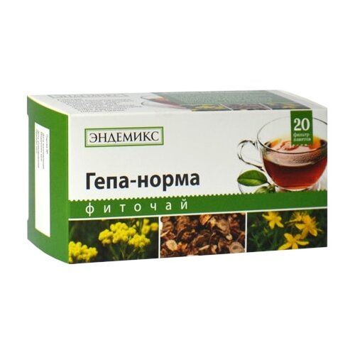 Травяной чай Эндемикс "Гепа-норма" Детокс, для очищения печени и кишечника от шлаков и токсинов. 20 пакетиков по 2г.
