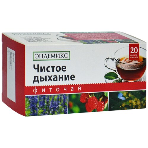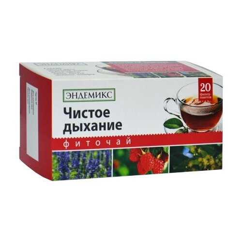 Травяной чай Эндемикс "Чистое дыхание" Детокс для борьбы с бактериями в бронхах и легких, облегчает дыхание, от простуды. 20 пакетиков по 2г.
