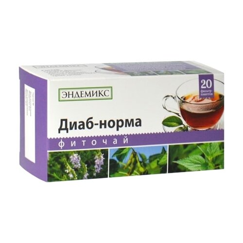 Травяной чай Эндемикс "Диаб-Норма" для нормализации уровня сахара в крови при диабете и эластичности сосудов, детокс. 20 пакетиков по 2г.