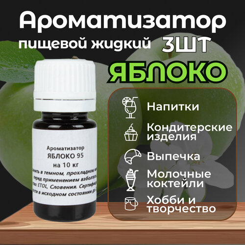 Ароматизатор пищевой Яблоко 3шт по 10мл для кондитерских изделий десертов выпечки напитков и детского творчества