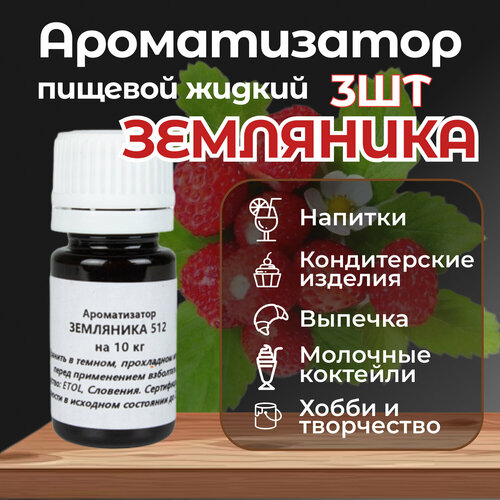 Ароматизатор пищевой Земляника 3шт по 10мл для кондитерских изделий десертов выпечки напитков и детского творчества